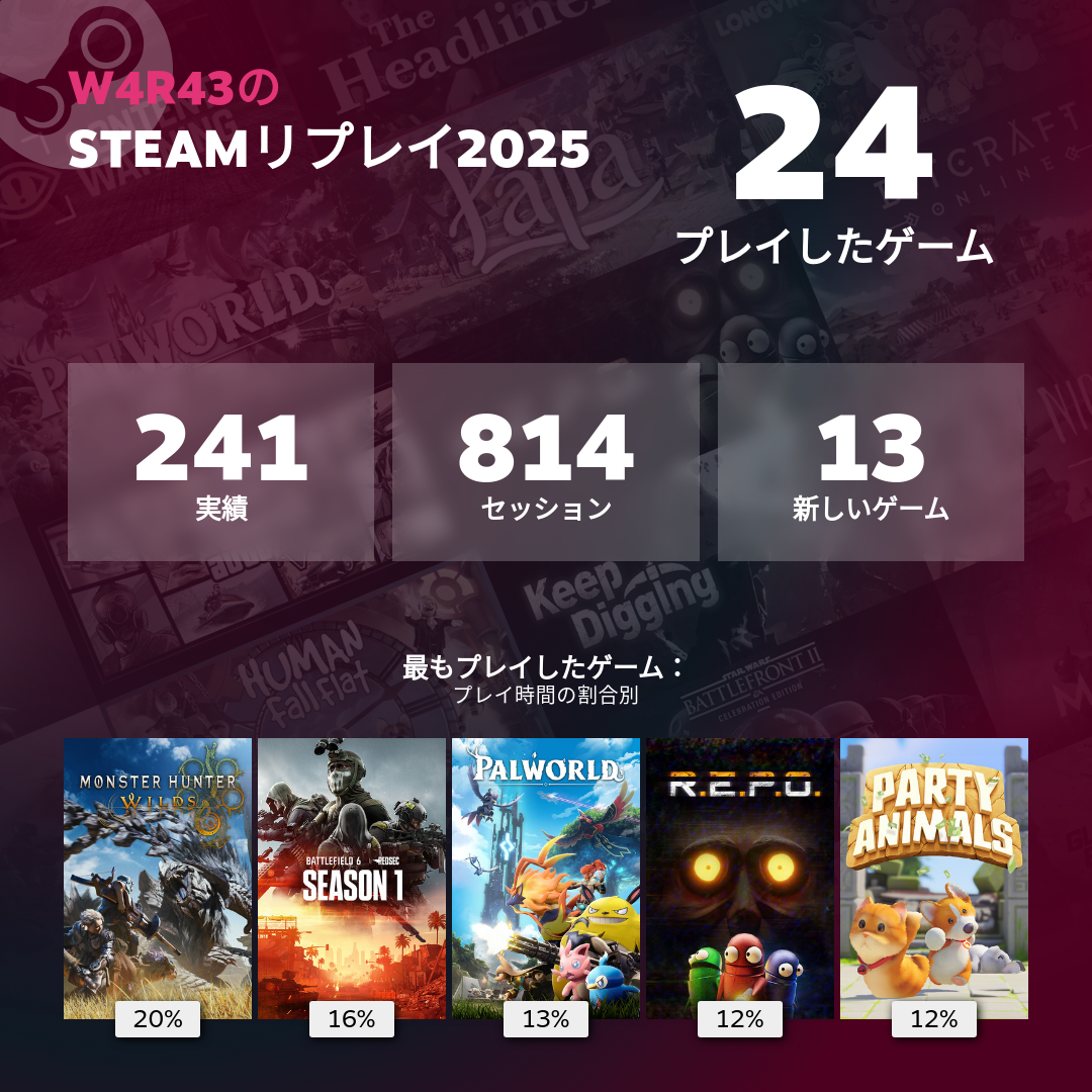 Steamが1年間のプレイ記録を勝手に作成してくれるので、一年の振り返りを自分でしなくていいのが楽